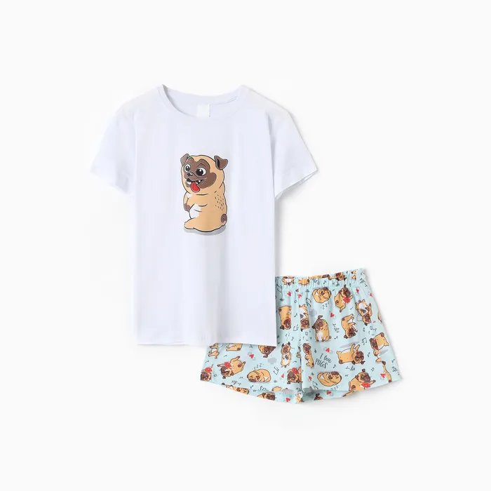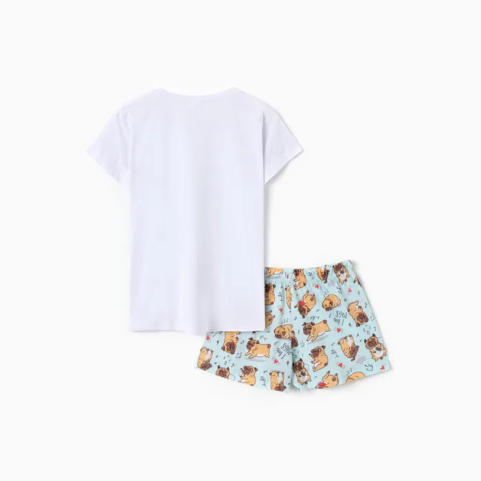 Комплект женский домашний (футболка,шорты) "Мопс", цвет белый/голубой, размер 50