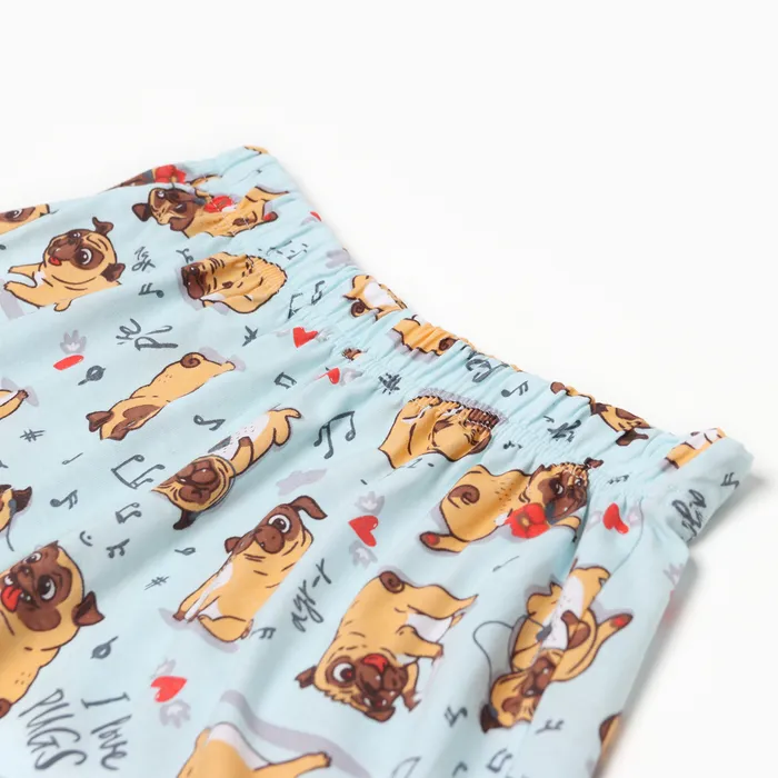 Комплект женский домашний (футболка,шорты) "Мопс", цвет белый/голубой, размер 50 — Характеристики