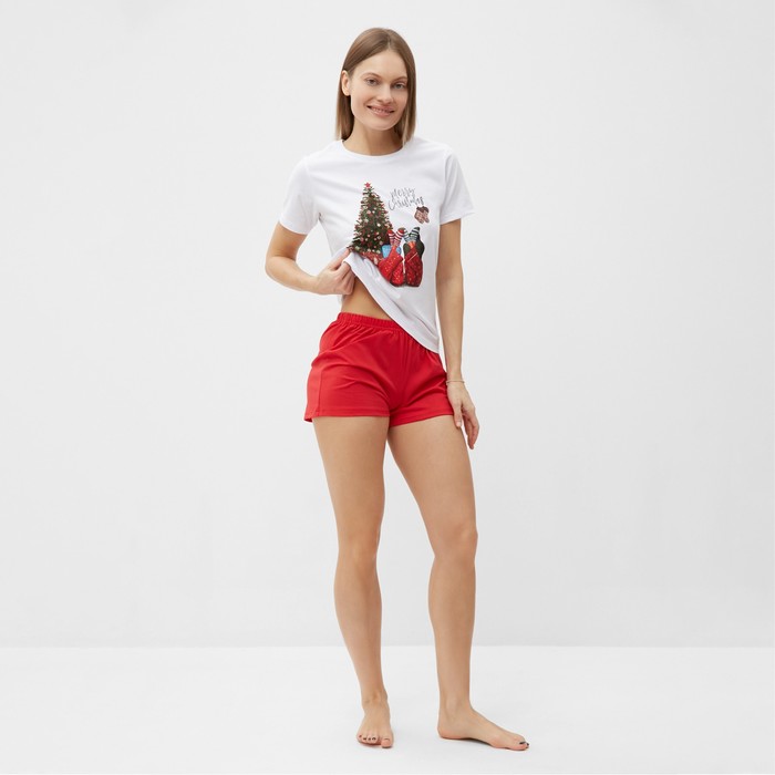 Комплект женский домашний (футболка,шорты), цвет белый/красный, размер 52