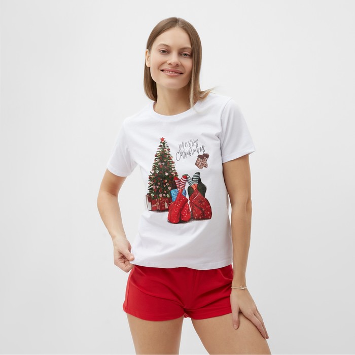 Комплект женский домашний (футболка,шорты), цвет белый/красный, размер 52 — Характеристики