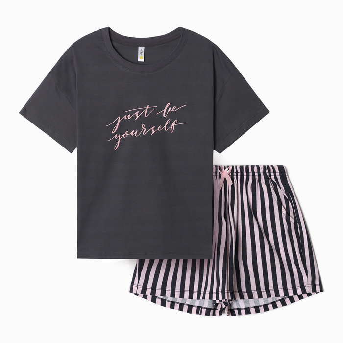 Комплект женский домашний (футболка,шорты), цвет графит розовая полоска, р-р 44