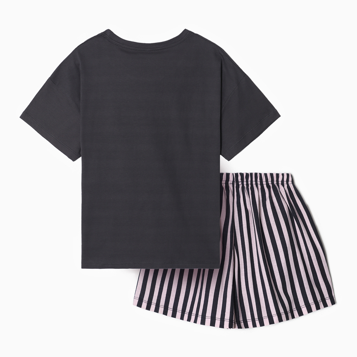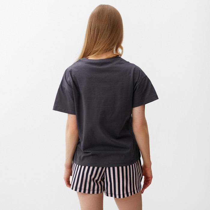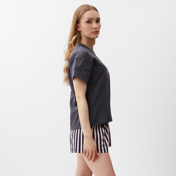 Комплект женский домашний (футболка,шорты), цвет графит розовая полоска, р-р 44 — Характеристики