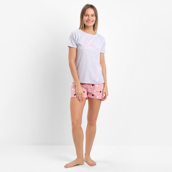 Комплект женский домашний (футболка/шорты), цвет серый, размер 54