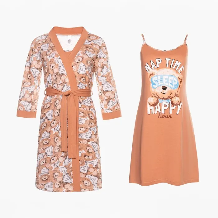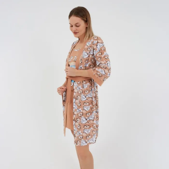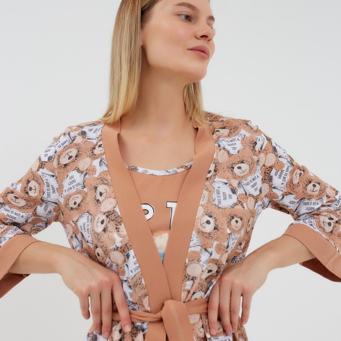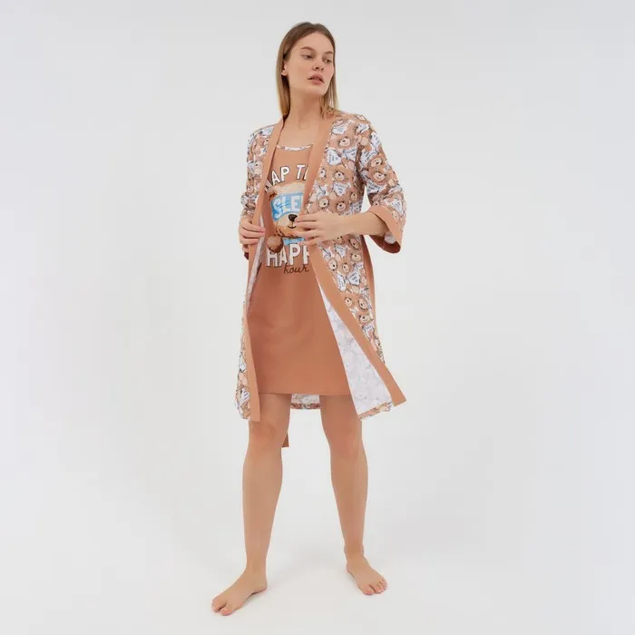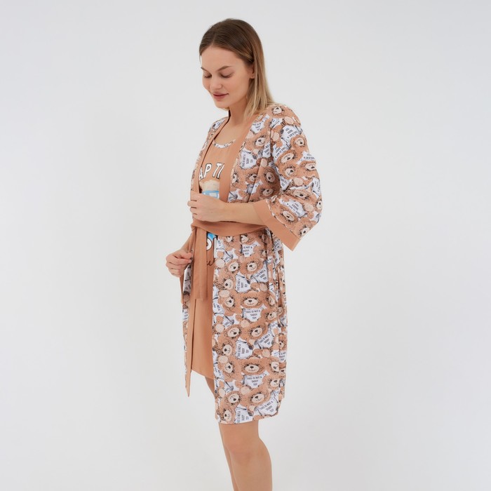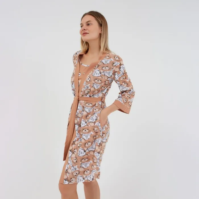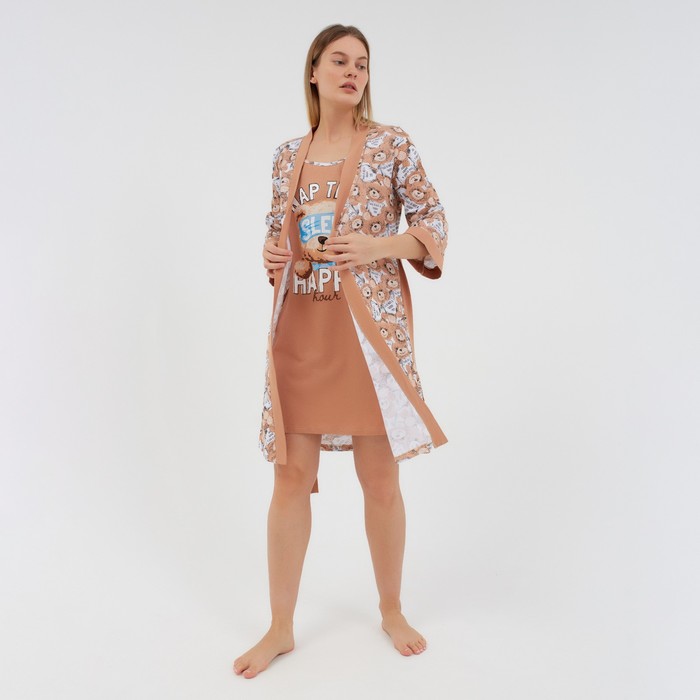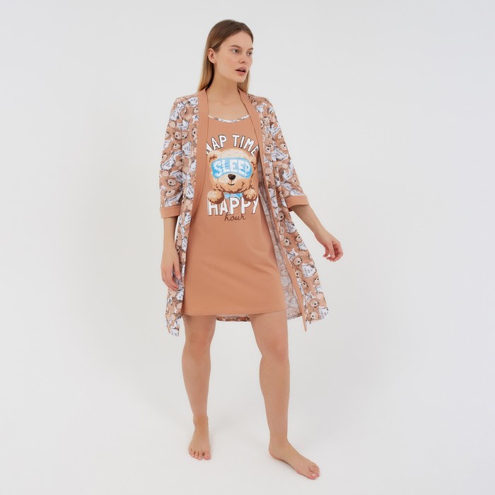 Комплект женский домашний (халат/сорочка), цвет бежевый, размер 46
