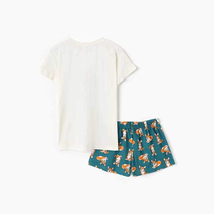 Комплект женский домашний "Корги" (футболка,шорты), цвет белый/зеленый, размер 52