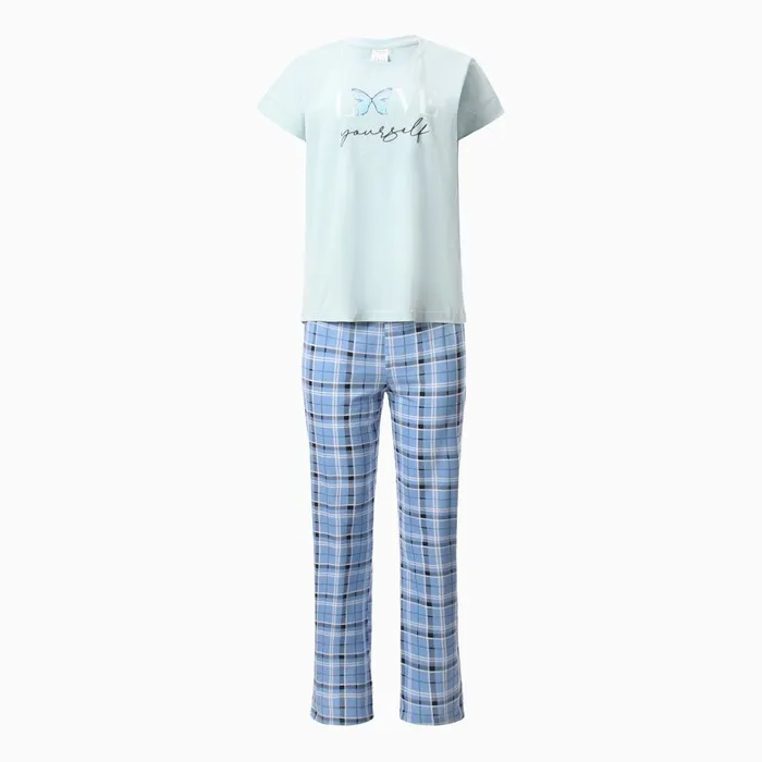 Комплект женский домашний LOVE (футболка, брюки), цвет голубой, размер 48 — Характеристики
