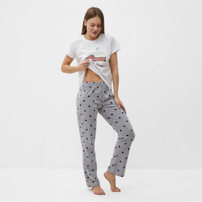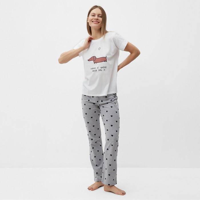 Комплект женский домашний «Такса» (футболка, брюки), цвет белый/серый, размер 50