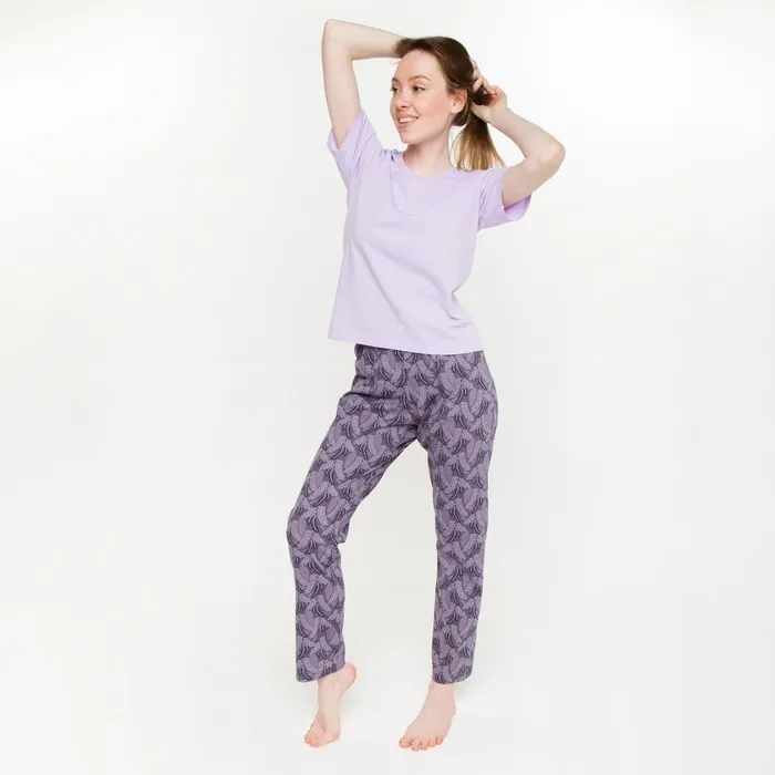 Комплект женский (футболка, брюки), сиреневый колосы, размер 44 — Характеристики