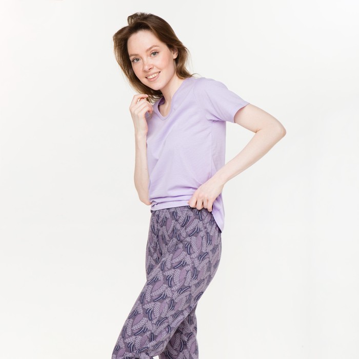 Комплект женский (футболка, брюки), сиреневый колосы, размер 44 — Характеристики