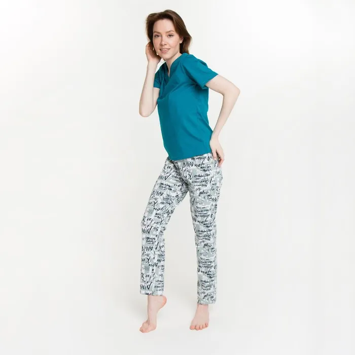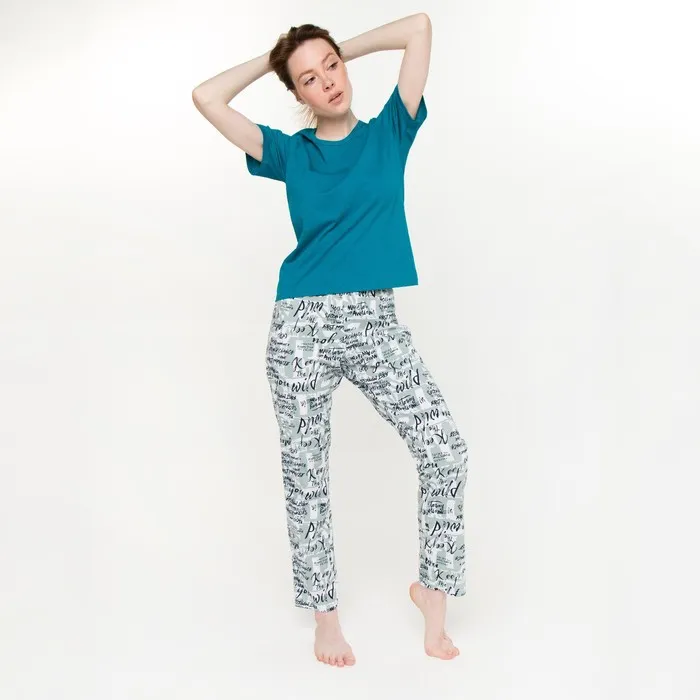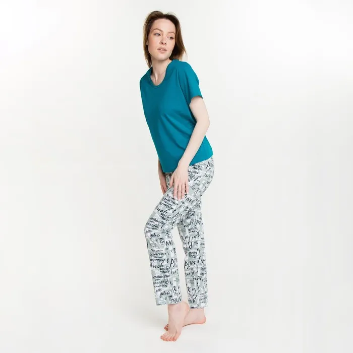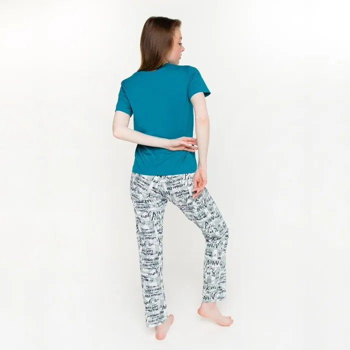Комплект женский (футболка, брюки), цвет бирюзовый, размер 54