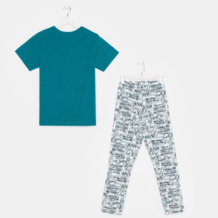 Комплект женский (футболка, брюки), цвет бирюзовый, размер 54