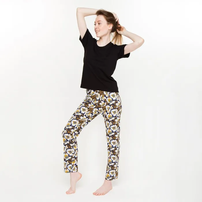 Комплект женский (футболка, брюки), цвет чёрный, размер 46 — Характеристики