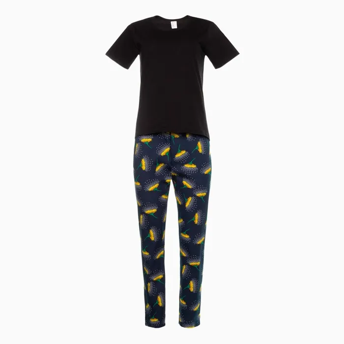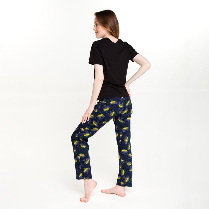Комплект женский (футболка, брюки), цвет чёрный, размер 50