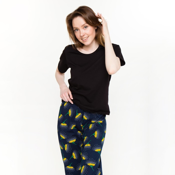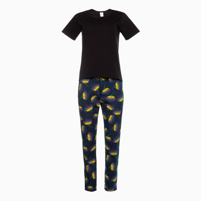 Комплект женский (футболка, брюки), цвет чёрный, размер 54