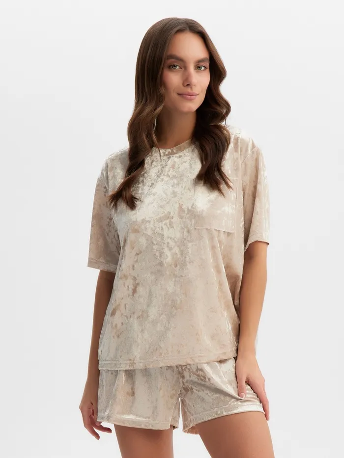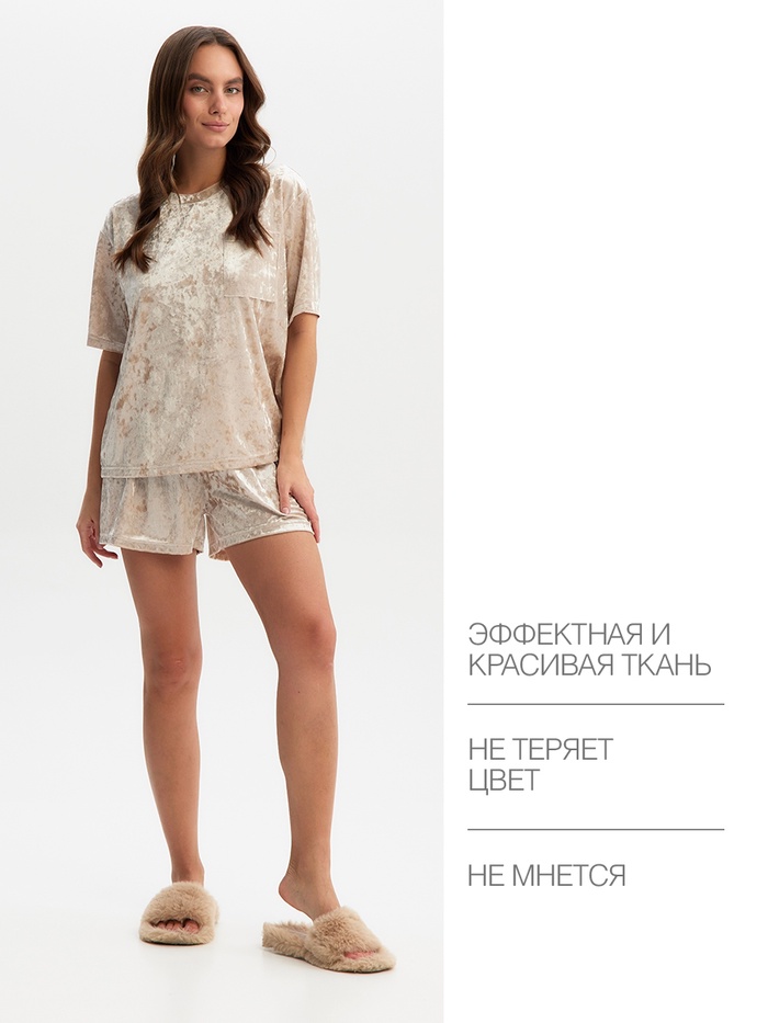 Комплект женский (футболка и шорты) KAFTAN Velvet р. 44-46, бежевый — Характеристики