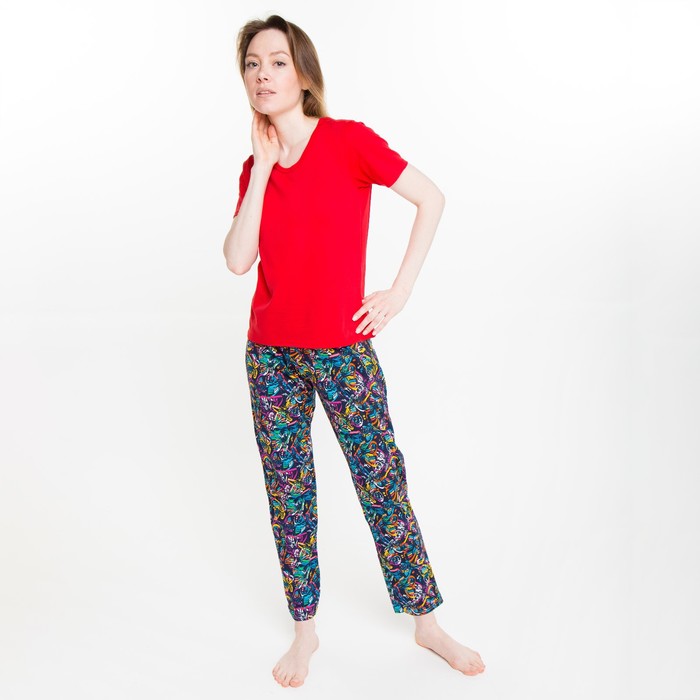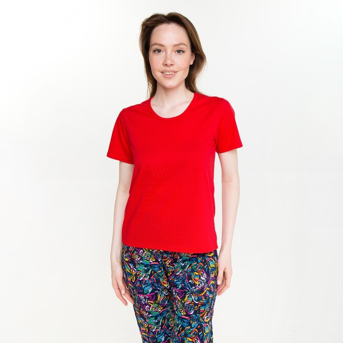 Комплект женский (футболка/брюки), цвет красный/бабочки, размер 54 — Характеристики