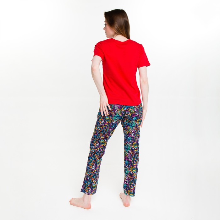 Комплект женский (футболка/брюки), цвет красный/бабочки, размер 54