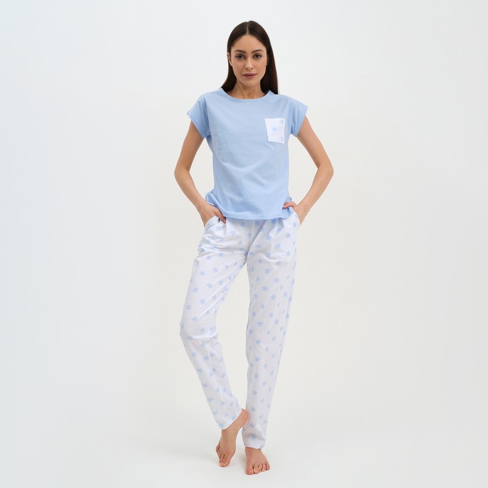 Пижама женская (брюки, футболка) KAFTAN «Звёздочки», размер 40-42, цвет голубой, белый