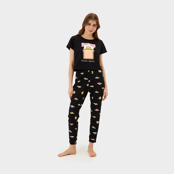 Пижама женская (футболка, брюки) KAFTAN Egg, размер 44-46, чёрная