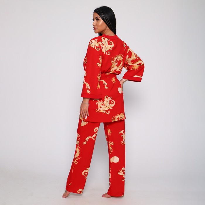 Комплект женский (халат/топ/брюки), цвет красный, размер 44