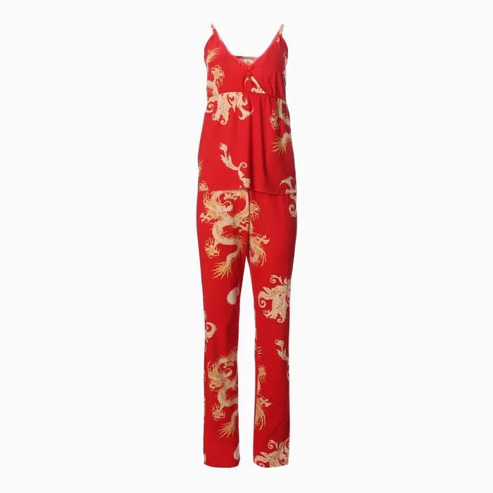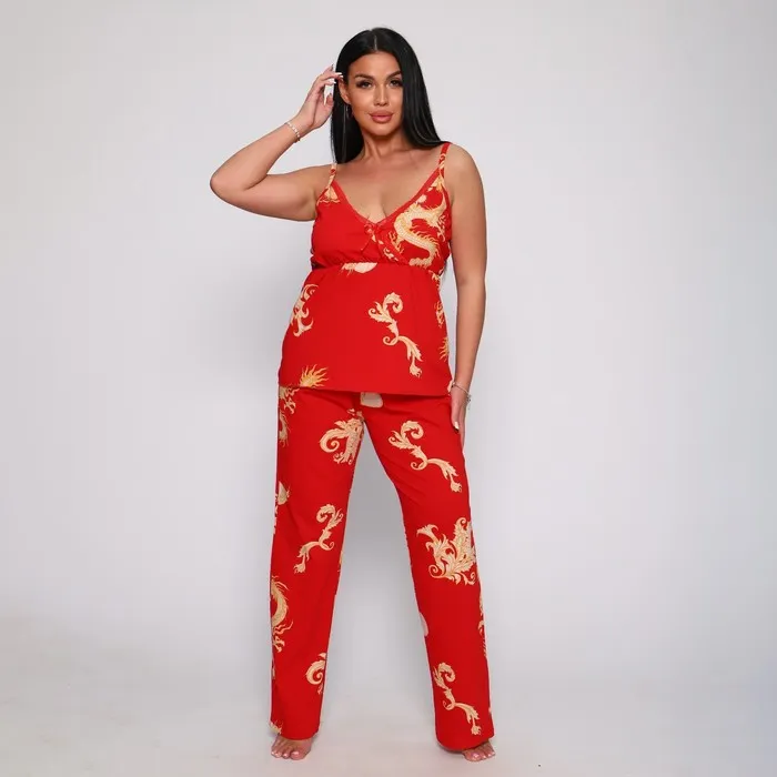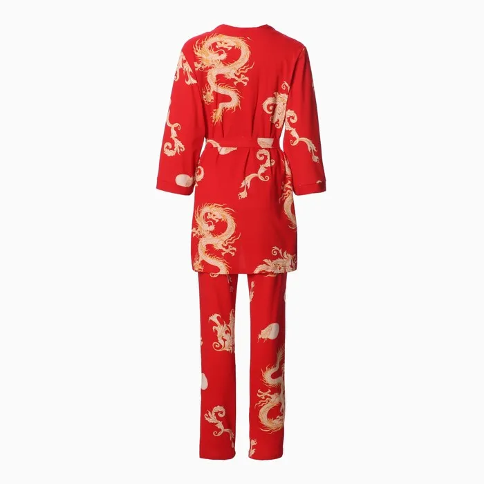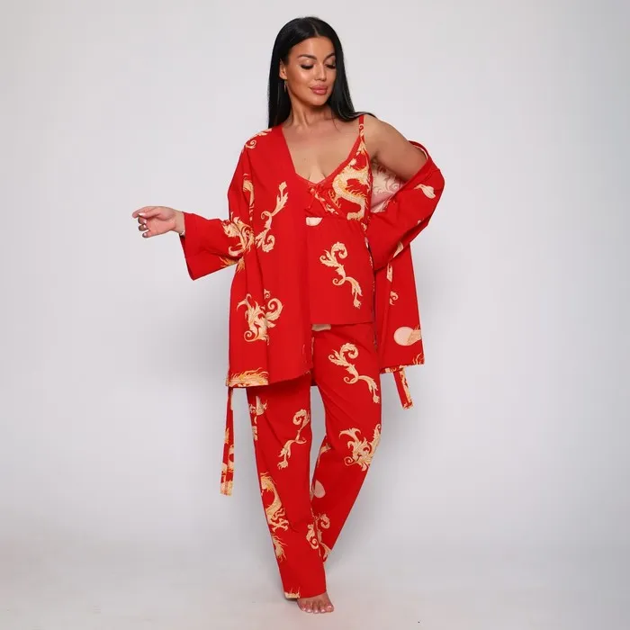 Комплект женский (халат/топ/брюки), цвет красный, размер 50