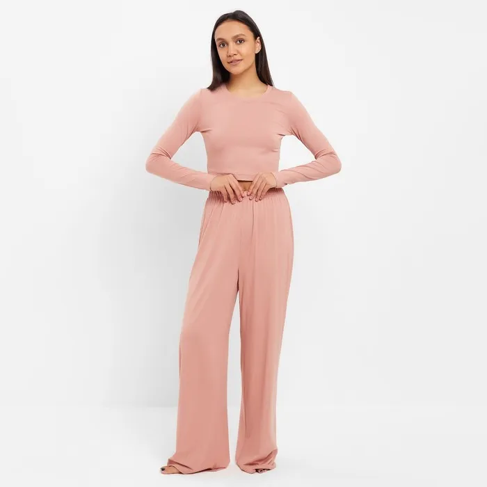 Комплект женский (лонгслив, брюки) MINAKU: Home collection цвет тёмно-бежевый, размер 42 — Характеристики