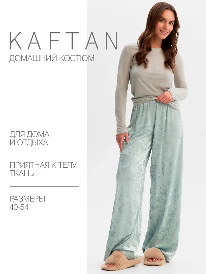 Комплект женский (лонгслив и брюки) KAFTAN "Бархат", 52-54, мята — Характеристики