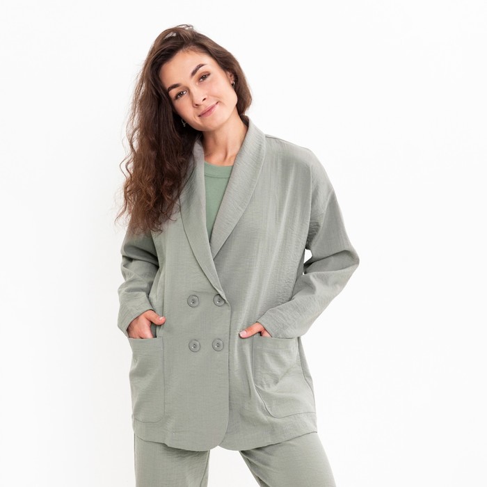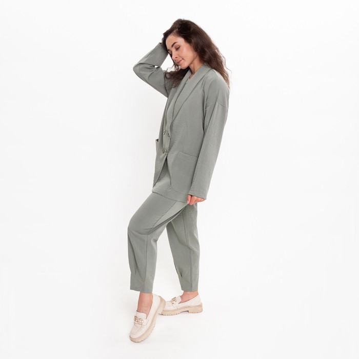 Комплект женский повседневный (жакет и брюки), хаки, размер 42