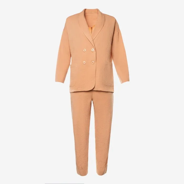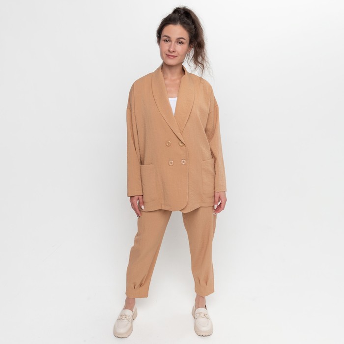 Комплект женский повседневный (жакет и брюки), цвет бежевый, размер 48