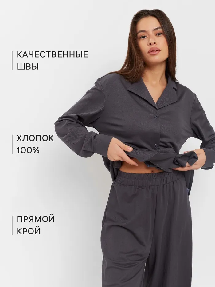 Комплект женский (рубашка, брюки, топ) KAFTAN "Base" р. 50, графит — Характеристики