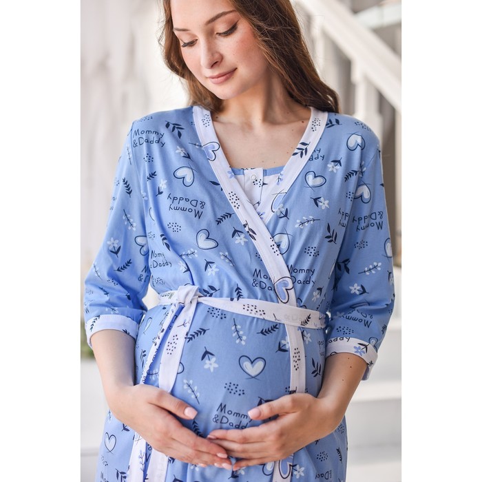 Комплект женский (сорочка/халат) для беременных, цвет голубой, размер 50 — Характеристики