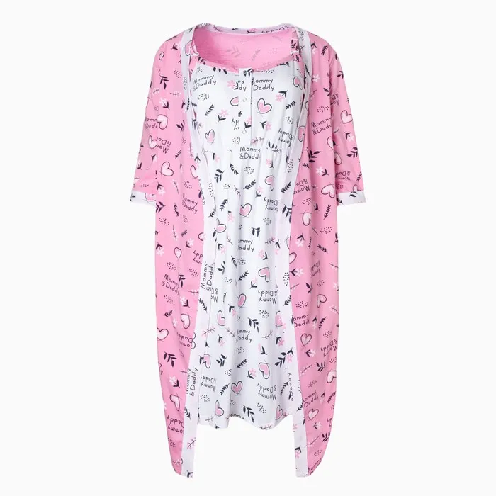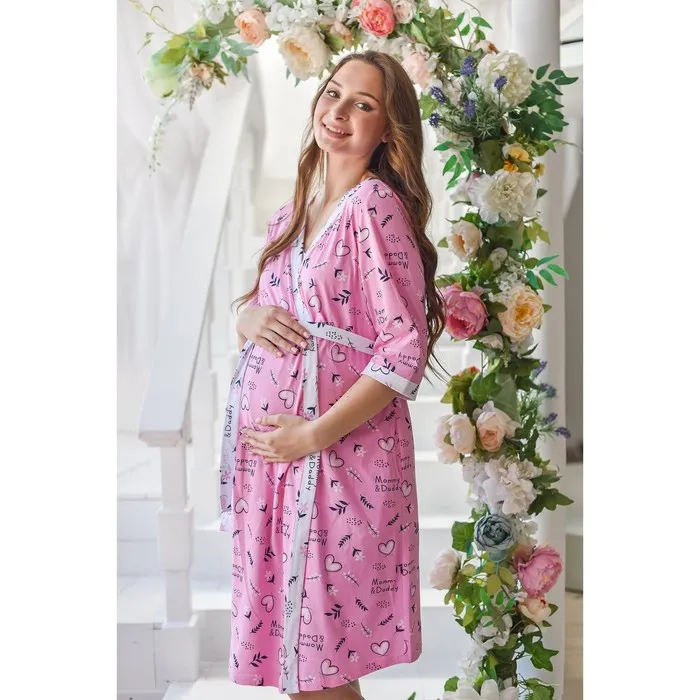 Комплект женский (сорочка/халат) для беременных, цвет розовый, размер 52