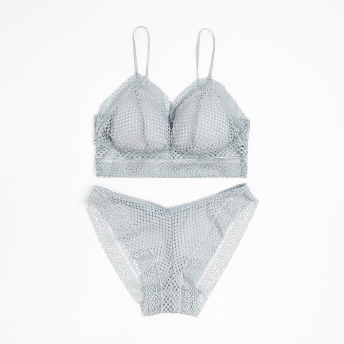 Нижнее бельё женское: топ и трусы, цвет серо-голубой, размер 42-44