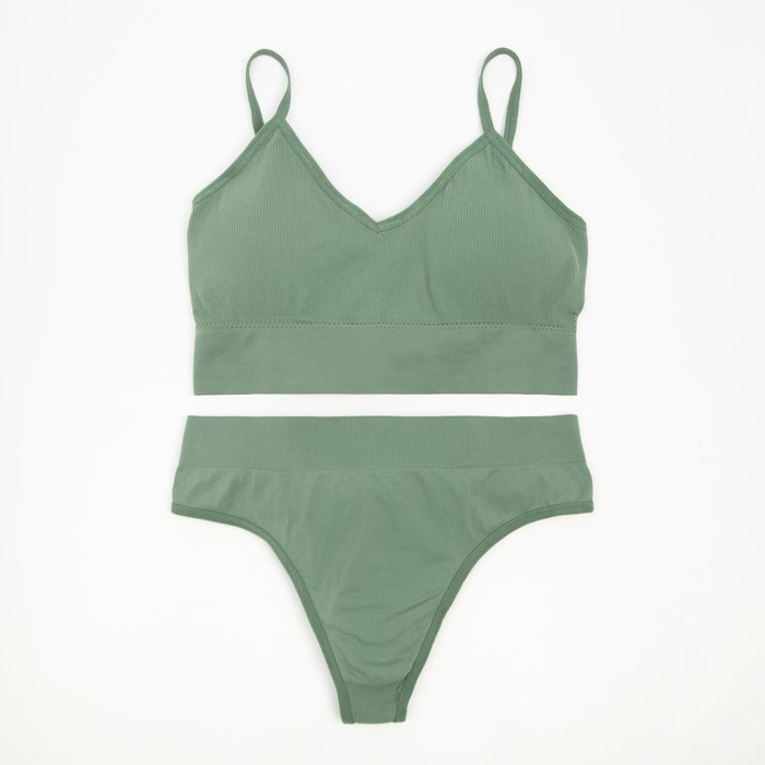 Комплект женский (топ, трусы) цвет зеленый, размер 42-44