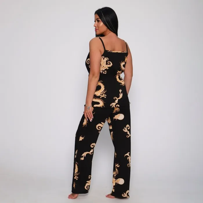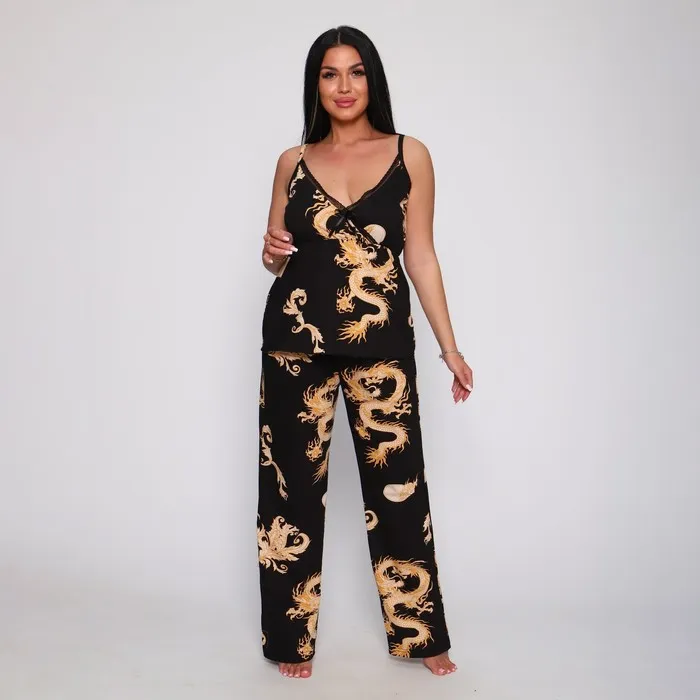 Комплект женский (топ/брюки), цвет чёрный, размер 50