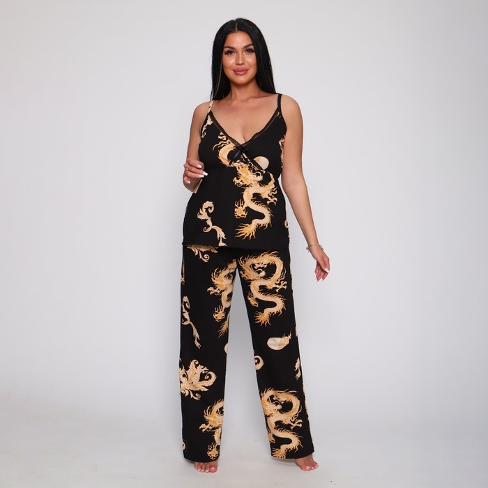 Комплект женский (топ/брюки), цвет чёрный, размер 50 — Характеристики