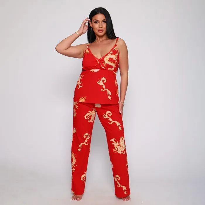 Комплект женский (топ/брюки), цвет красный, размер 46