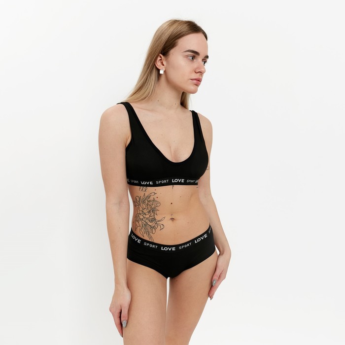 Комплект женский (топ,трусы), цвет чёрный, размер ONE SIZE (42-48)
