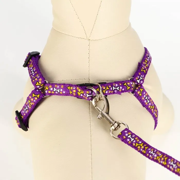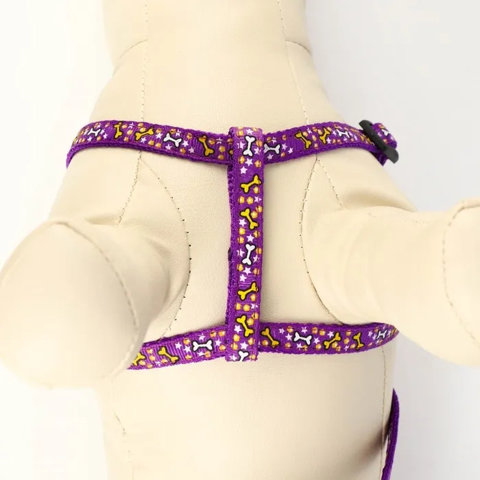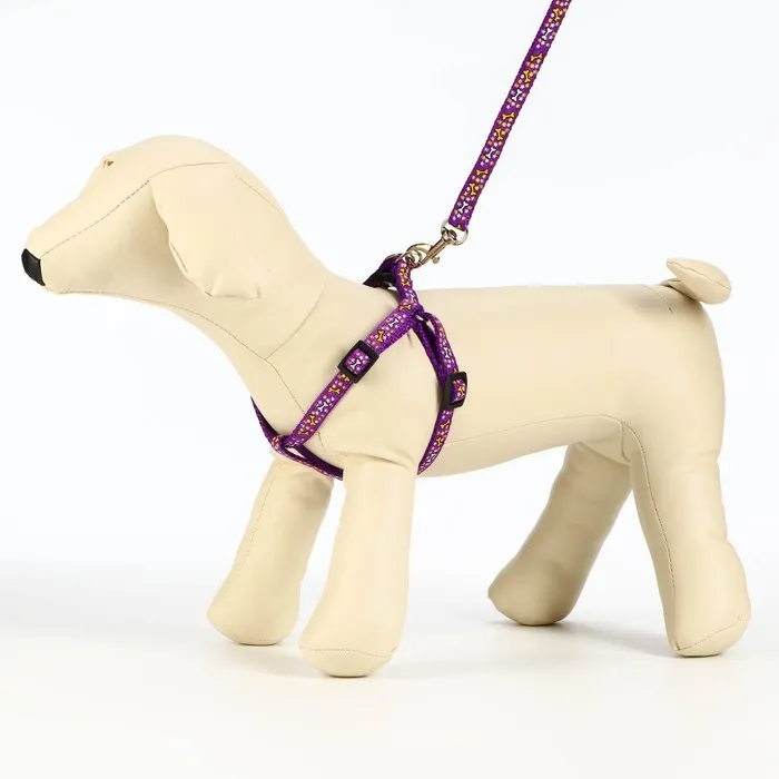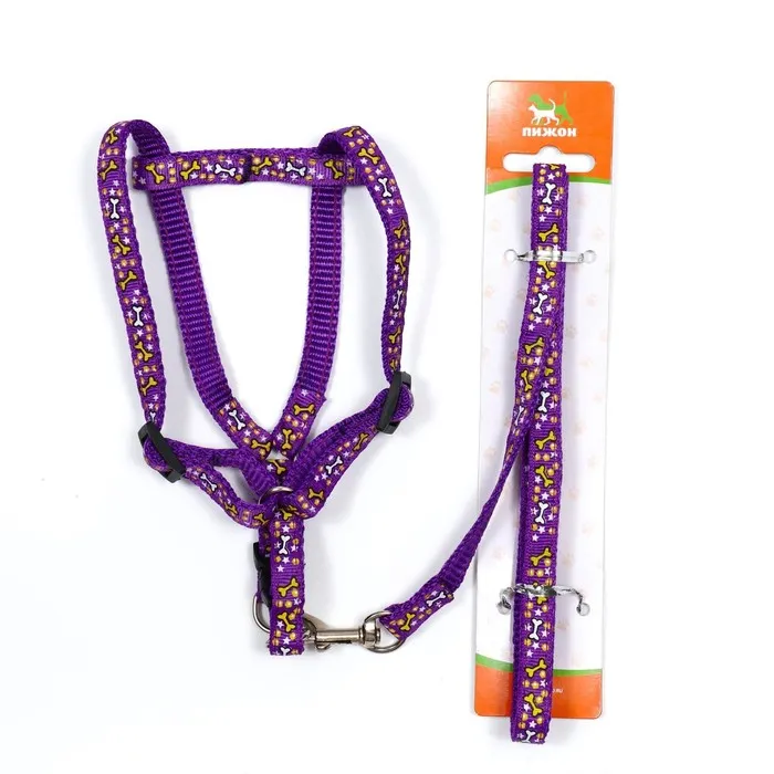 Комплект амуниции - практичное решение для комфортных прогулок на свежем воздухе с питомцем! Тканевая шлейка - мягкая и приятная на ощупь, дает возможность избежать скованности движений, повторяя контуры тела животного. В сочетании с ярким принтом комплект "Звёздные косточки" станет любимым комплектом питомца в Вашей коллекции!