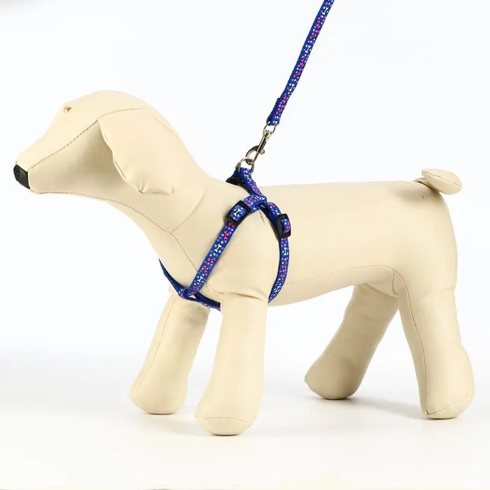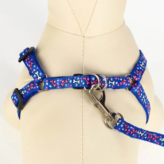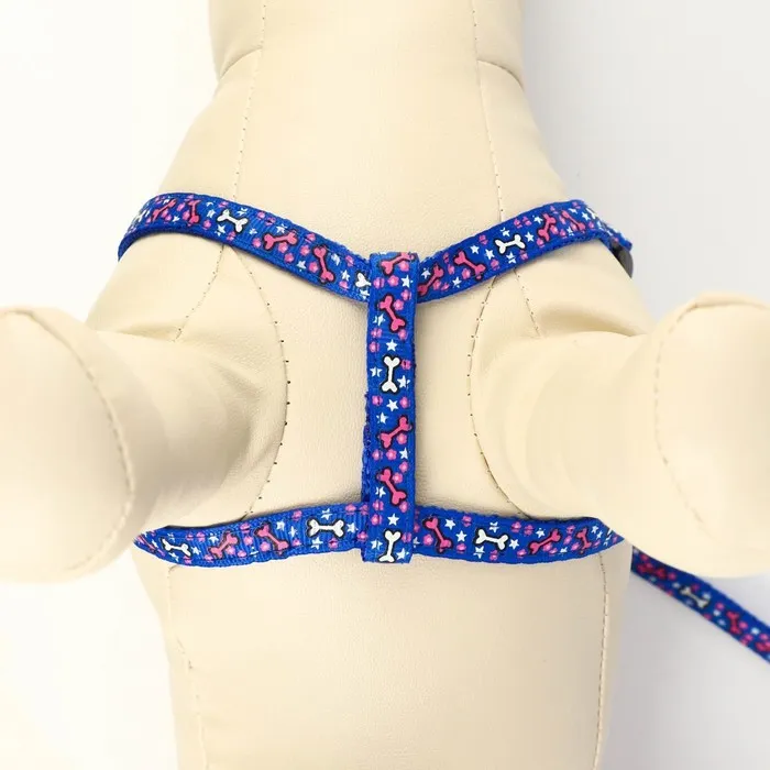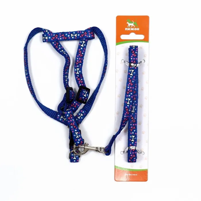 Комплект амуниции - практичное решение для комфортных прогулок на свежем воздухе с питомцем! Тканевая шлейка - мягкая и приятная на ощупь, дает возможность избежать скованности движений, повторяя контуры тела животного. В сочетании с ярким принтом комплект "Звёздные косточки" станет любимым комплектом питомца в Вашей коллекции!