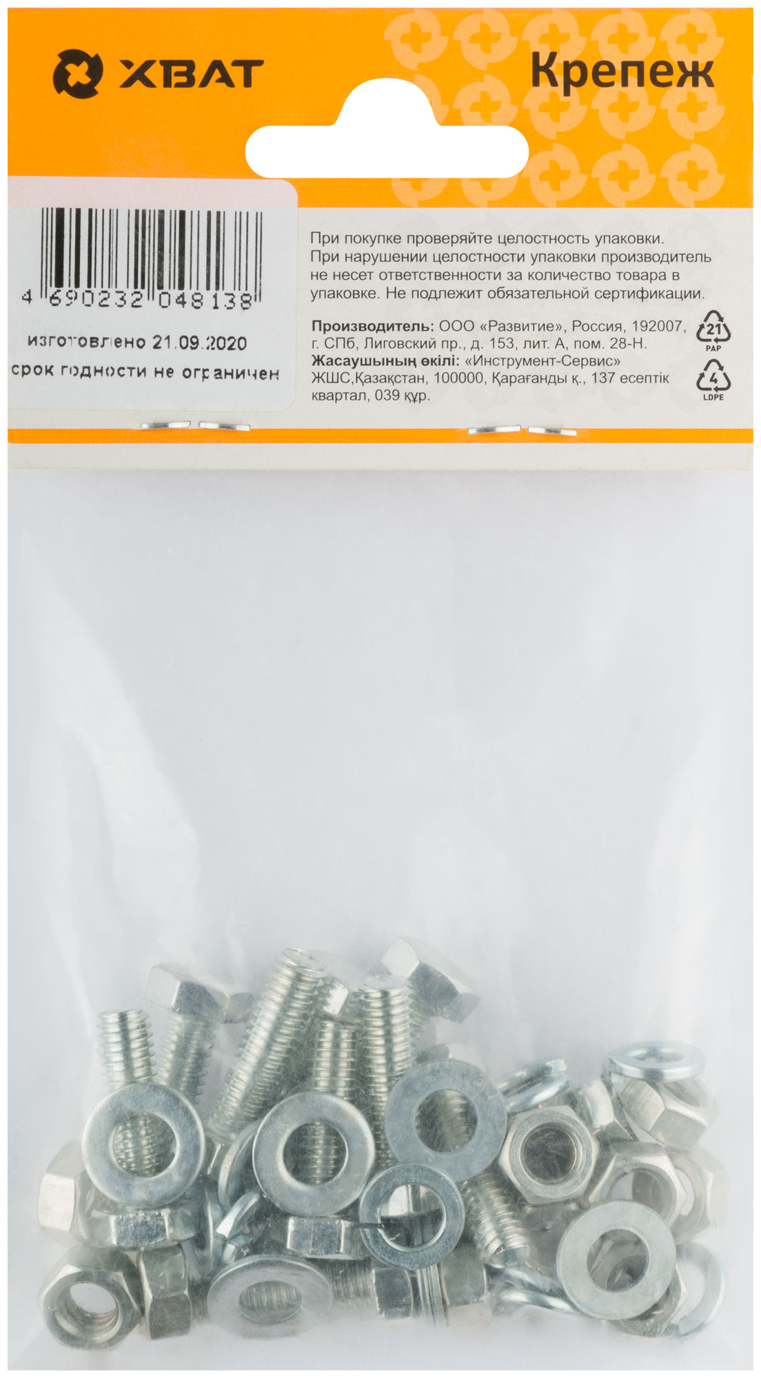 Комплект болтов 6х20 с гайками и шайбами для надежного крепежа