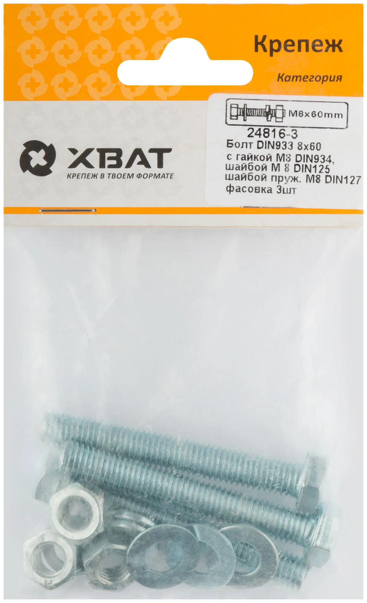 Комплект болтов и гайки с шайбами 8х60 мм для прочных соединений