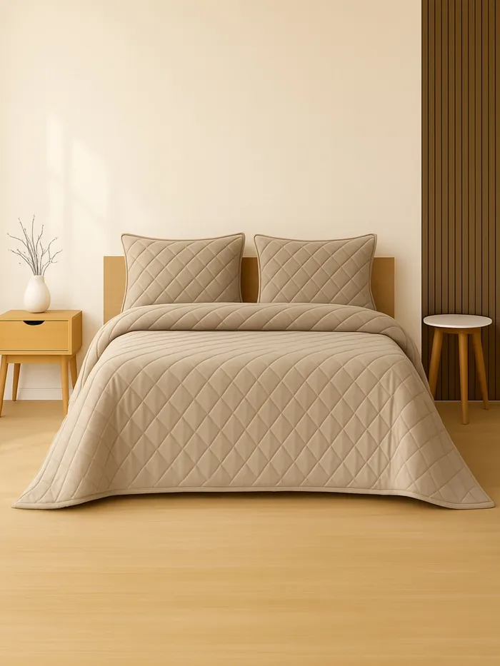 Комплет спальный: покрывало 260×240±5 см, наволочка 50×70+4 см (2 шт.), бежевый, велюр
