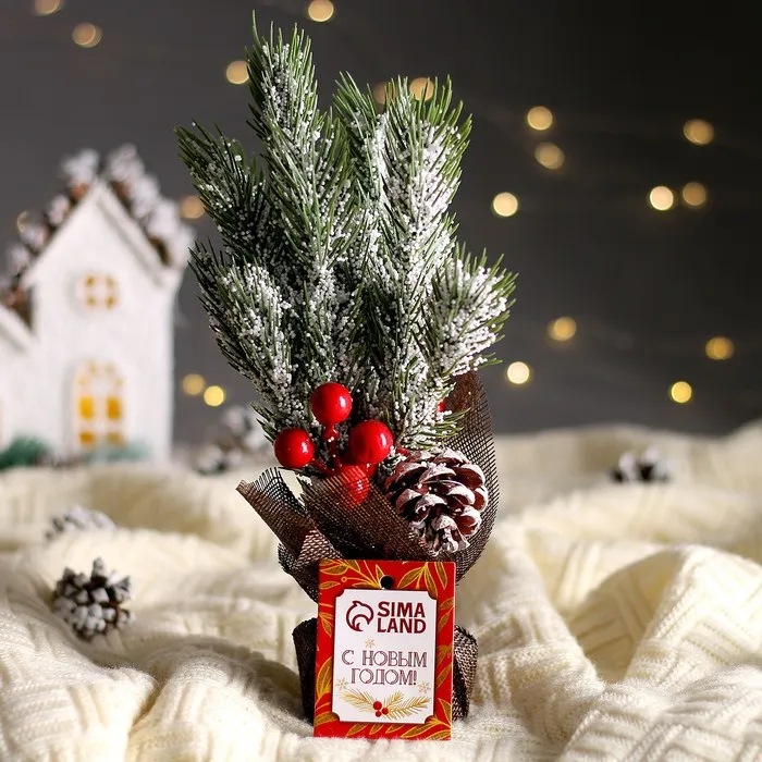 Новогодняя композиция «Веточка с ягодками», 15 × 15 × 29 см