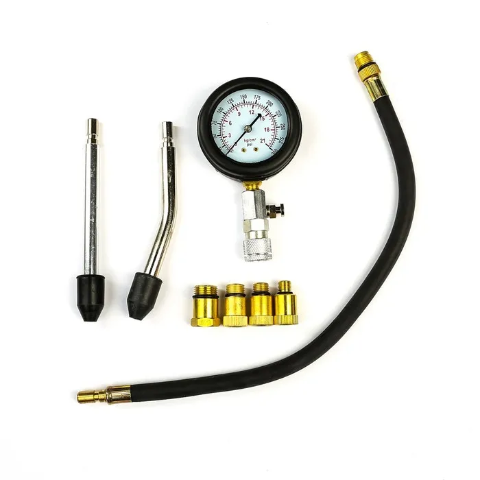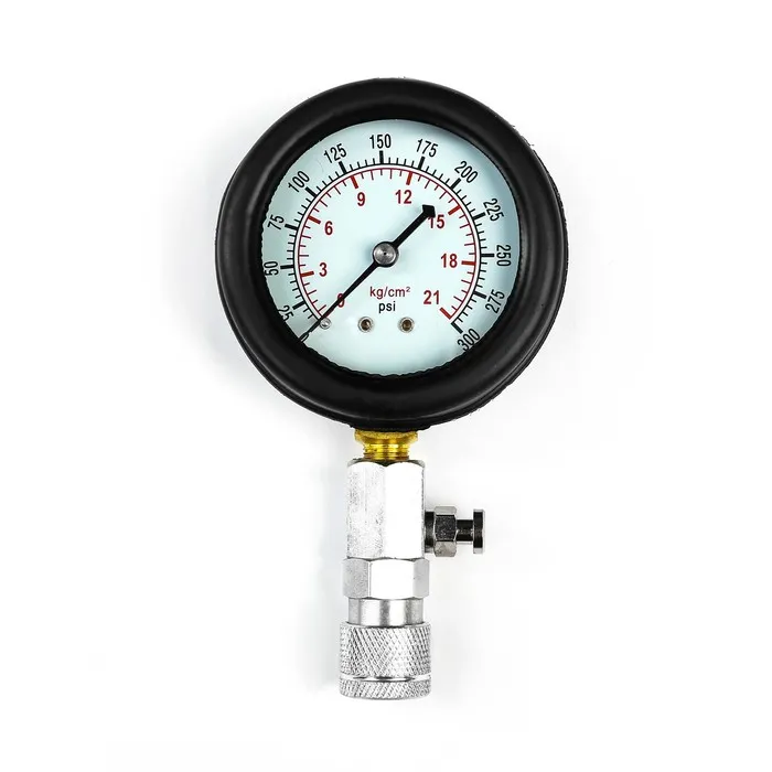 Автомобильный манометр нужен для контроля давления в шинах. Он удобнее компрессорных приборов, не требует разматывания шлангов, выдает точные показания. Механический компрессометр имеет довольно простое устройство. Его основу составляет манометр, к которому подведена металлическая или гибкая трубка, заканчивающаяся запорным клапаном. Измерение компрессии возможно благодаря именно этому клапану — он обеспечивает «запоминание» манометром пиковых показателей давления, которые в цилиндре наблюдаются только десятые доли секунды.
