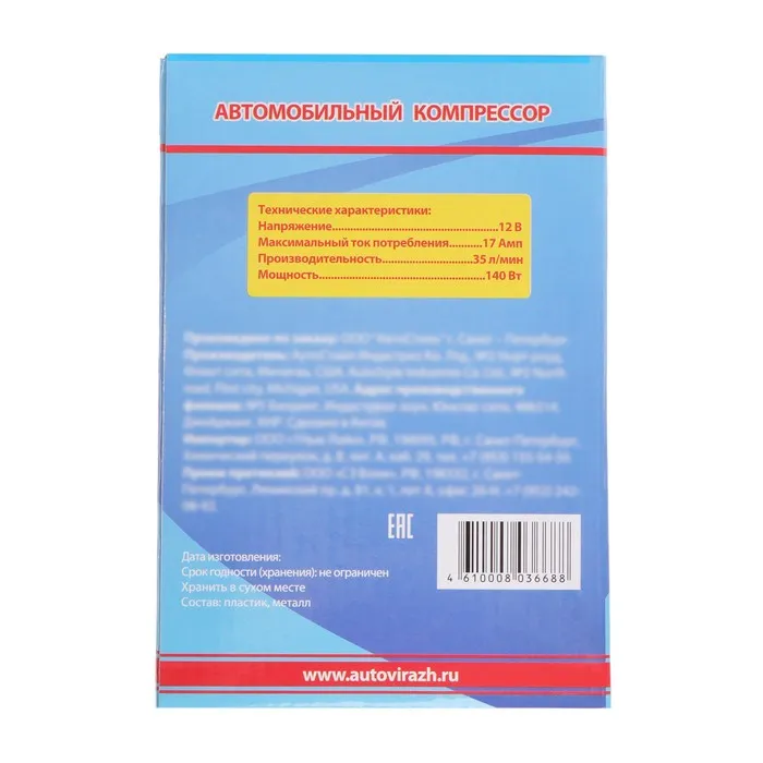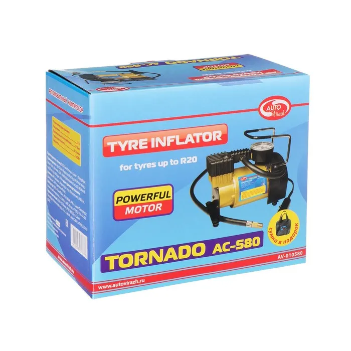 Компрессор AUTOVIRAZH AC580 Торнадо AV-010580 обладает высокой мощностью, которая позволяет работать с автомобилями различного класса.