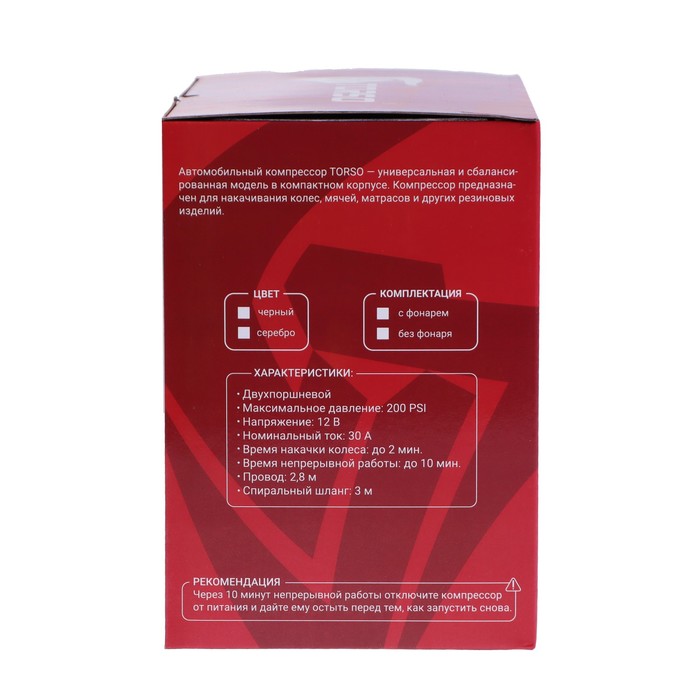 Компрессор автомобильный TORSO, двухпоршневой, 12В, 85 л/мин — Характеристики
