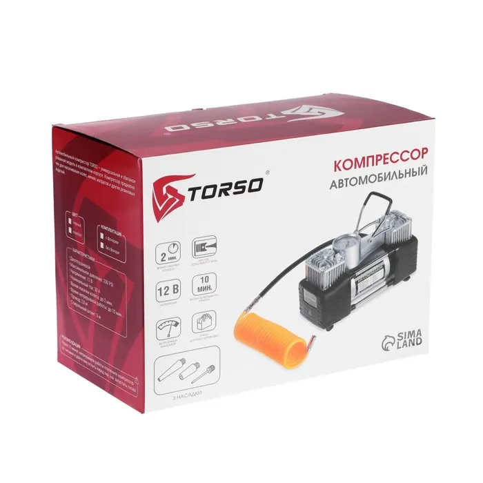 Компрессор автомобильный TORSO, двухпоршневой 12В, подсветка, 85 л/мин, провод 2.5 м — Характеристики