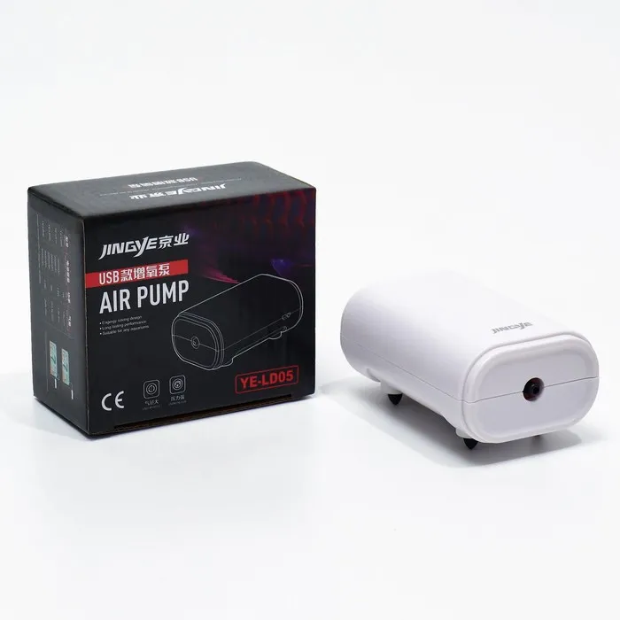 Компрессор JINGYE - это портативный внешний компрессор для аквариумов, который работает от USB. Он легкий и удобный в использовании, так как не требует подключения к электрической сети.