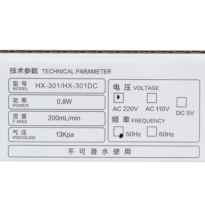 Компрессор для аквариума Sea Star HX-301, 200 мл/мин, 0,8 Вт, минатюрный, бесшумный — Характеристики
